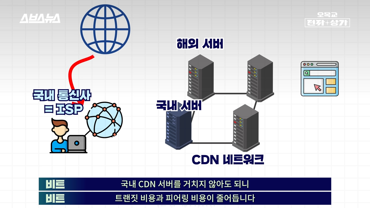 단순히 사이트에 접속하는 속도와 지연 시간이 떨어진다고 생각할 수도 있다. 하지만, 나와 같은 사람이 한 두 명이 아니라면 어떨까? 수십, 수백, 아니 수백만명이 동시에 해외 CDN 서버로 접속하게 되면 통신사의 해외와 연결된 도로가 매우 혼잡해지게 된다. 이는 통신사의 해외망 품질 저하로 이어진다.